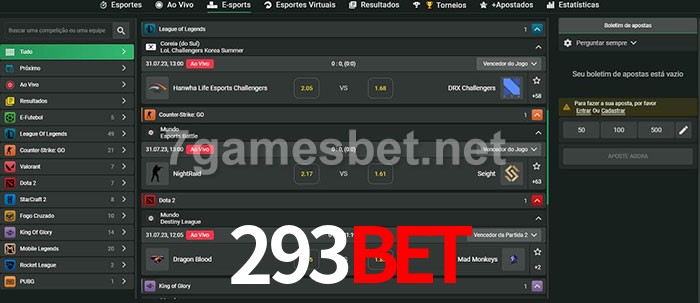 O 293bet oferece uma grande seleção de opções de apostas em e-sports com probabilidades competitivas